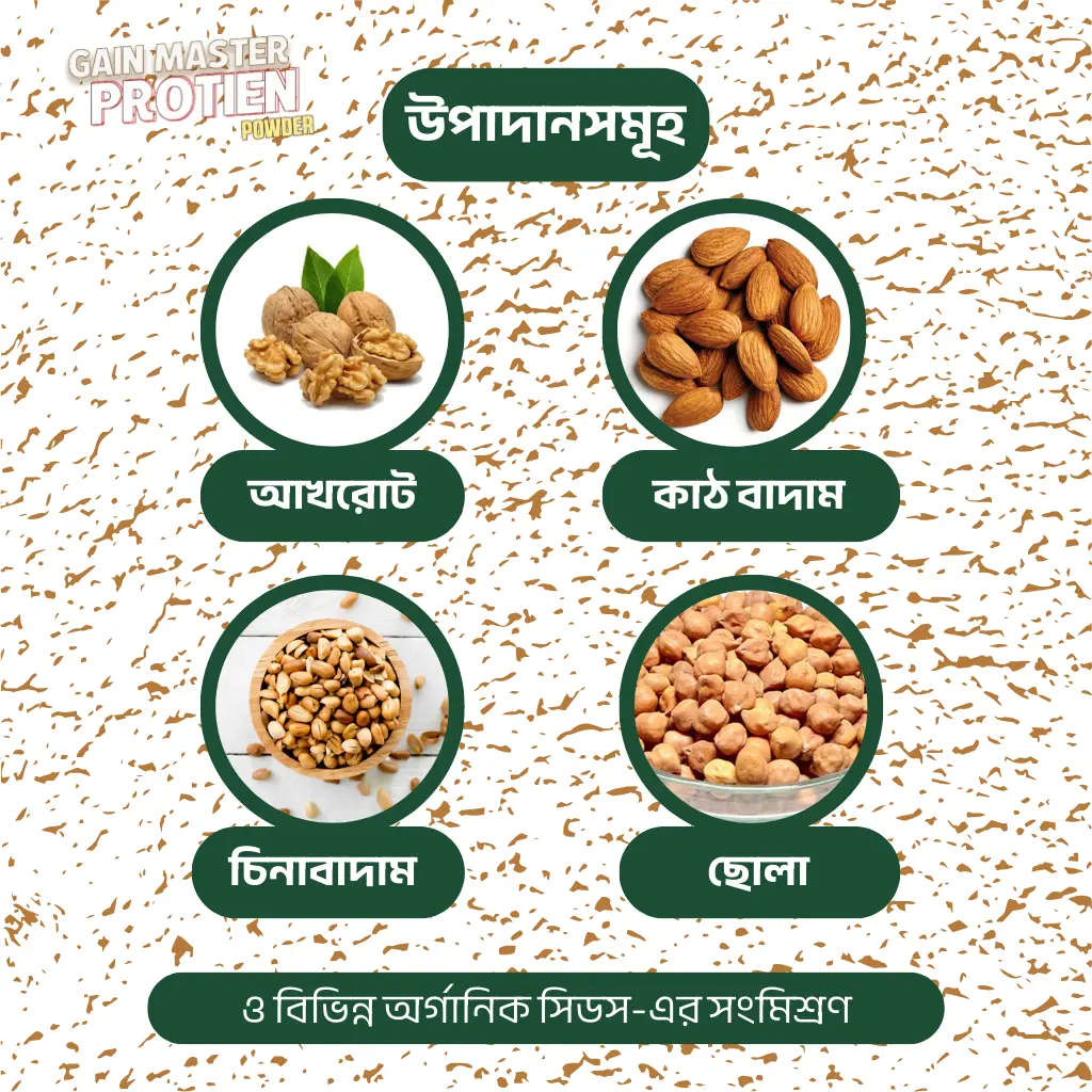 প্রোটিন পাওডার (চকলেট ফ্লেভার) — শক্তি, পেশী গঠন ও দৈনিক প্রোটিন চাহিদা পূরণে সহায়ক। সহজে মেশে, সহজে হজম হয়, আর ভ্যানিলার মৃদু স্বাদে পান করাও উপভোগ্য।